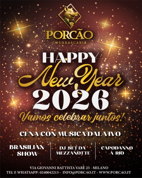 Preparati a vivere un Capodanno diverso da qualsiasi altro. Al Porcão ti aspetta una serata indimenticabile: cena, spettacolo e festa senza sosta, tutto in un’unica esperienza.